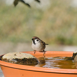 Sperlinge beim baden